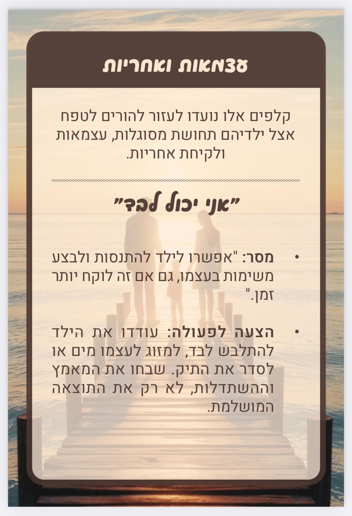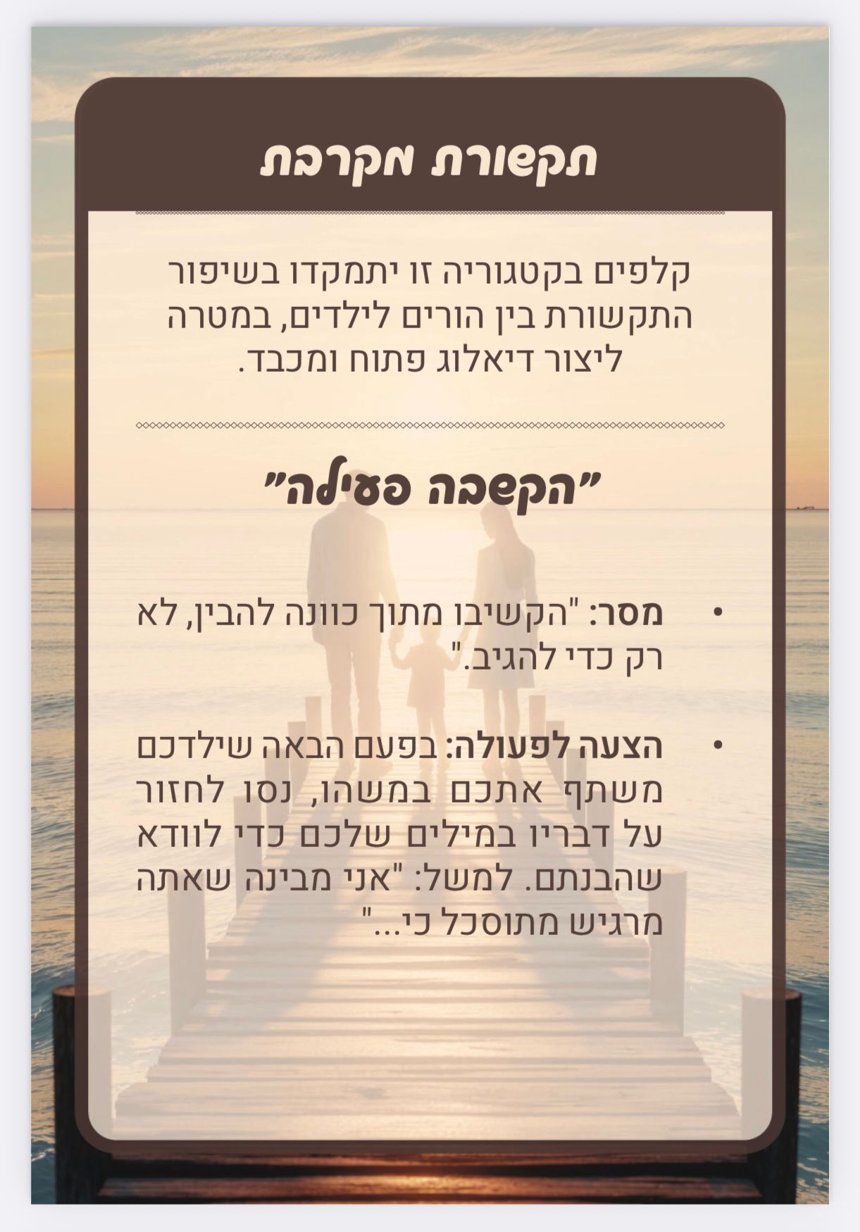 ✅ פתרונות למצבי אמת: מריבות אחים, סירוב למקלחת, זמן מסכים ועוד.