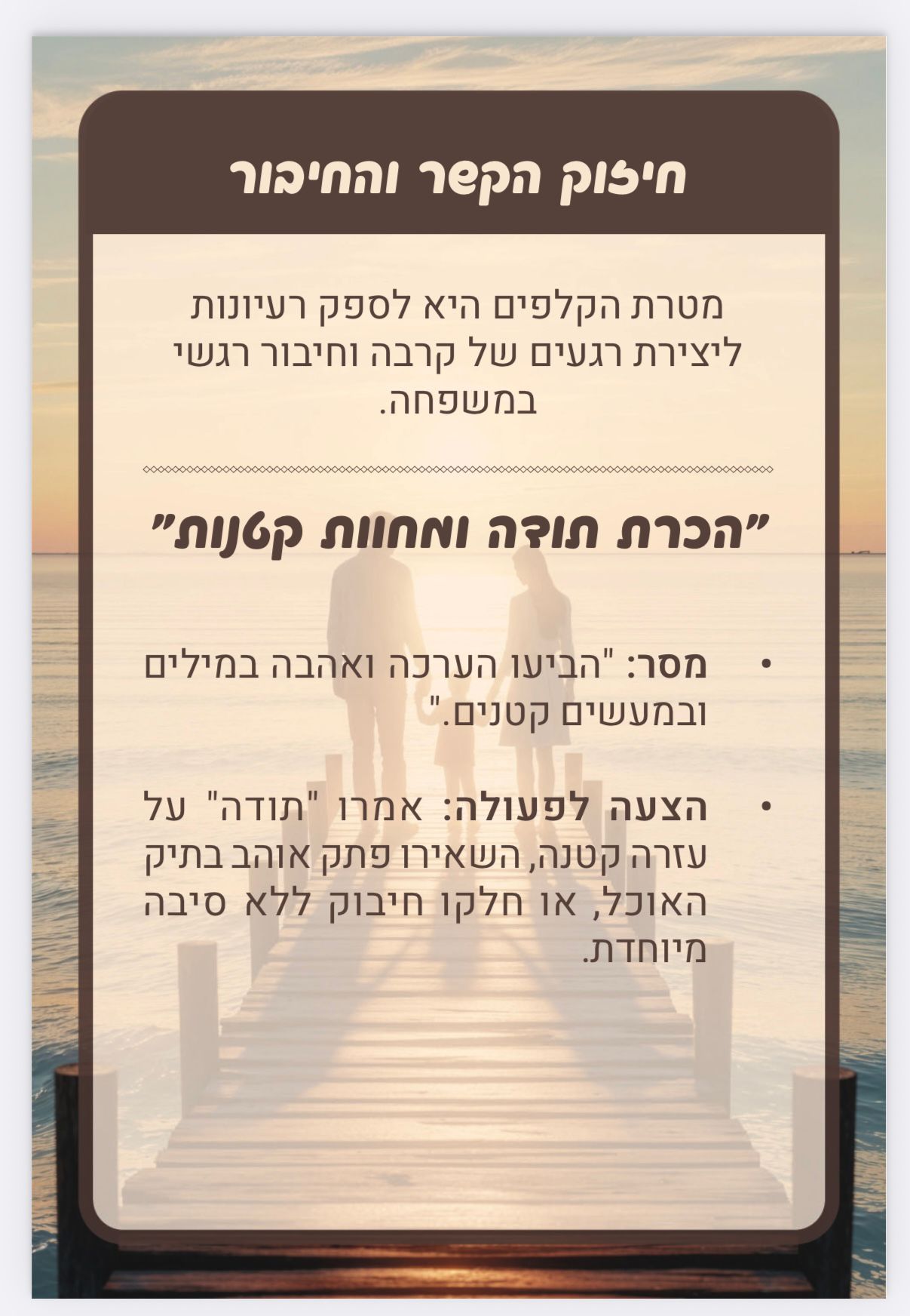 ✅ חיזוק הקשר: רעיונות לזמן איכות וחיבור רגשי.